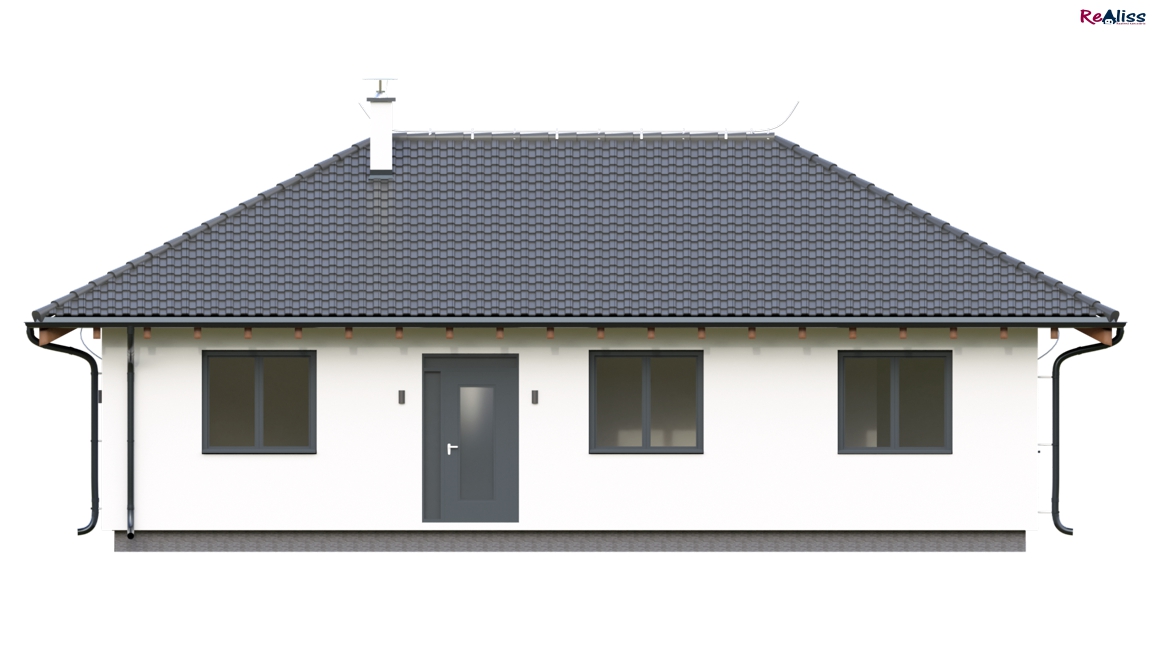 Jeho obytné. prízemné podlažie pozostáva zo zádveria. centrálnej chodby. troch svetlých samostatných izieb. pomerne veľkej rodinnej kúpeľne. samostatného WC. technickej miestnosti a haly tvoriacej otvorený priestor kuchyne s obývačkou. V hale je možnosť umiestnenia krbu ( komín k dispozícii ) a je vybavená veľkými francúzskymi dverami so vstupom na slnečnú terasu.