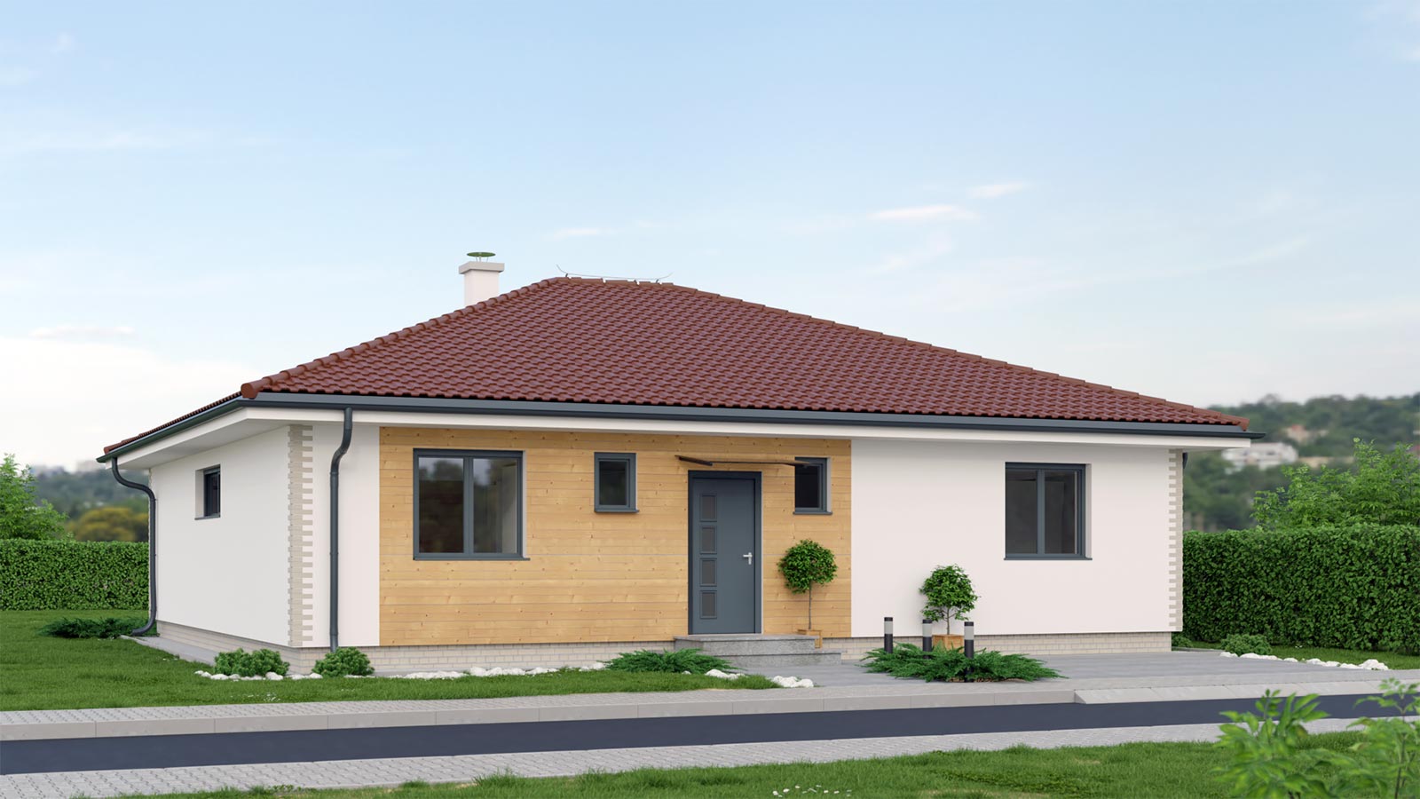 Rodinné domy sú k dispozícii typu bungalov. s moderným dizajnom a priestorovým riešením v rôznych veľkostiach a vybavením. Každý z domov má slnečnú terasu dostupnú cez veľké francúzske okná. priestrannú kuchyňu s obývačkou. vybavenie modernými technológiami a sú stavané v energetickej triede ..A...