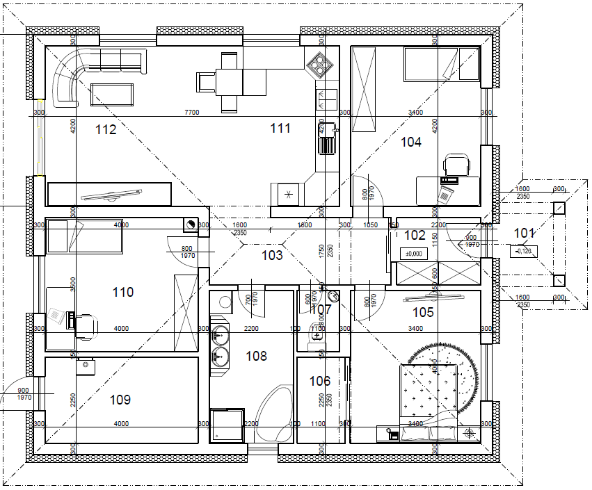 Cena domu je prerátaná do stavu hrubej stavby ( základová doska s obvodovým murivom. vnútorné priečky. okná. vstupné dvere. strecha. klampiarske práce...)